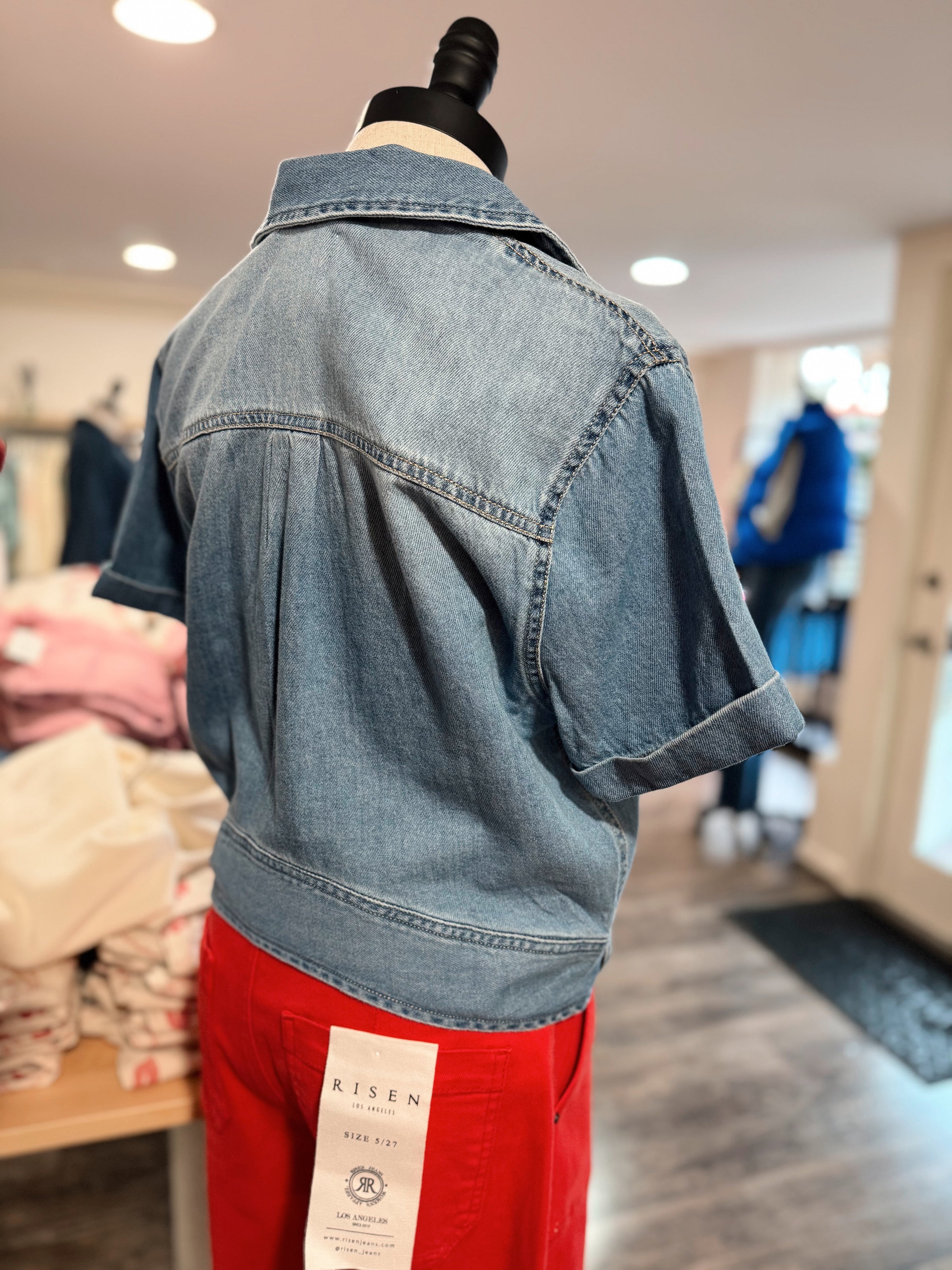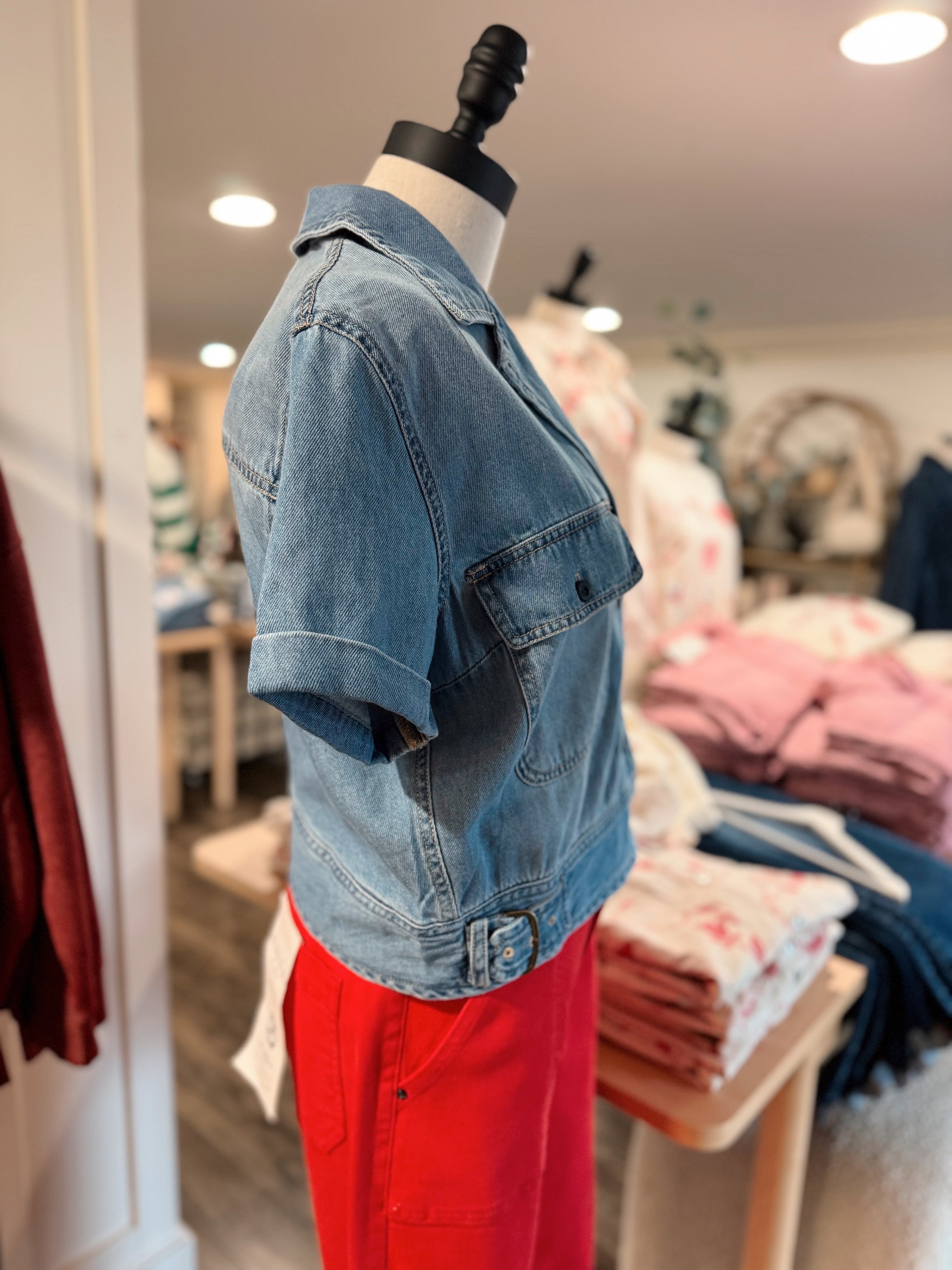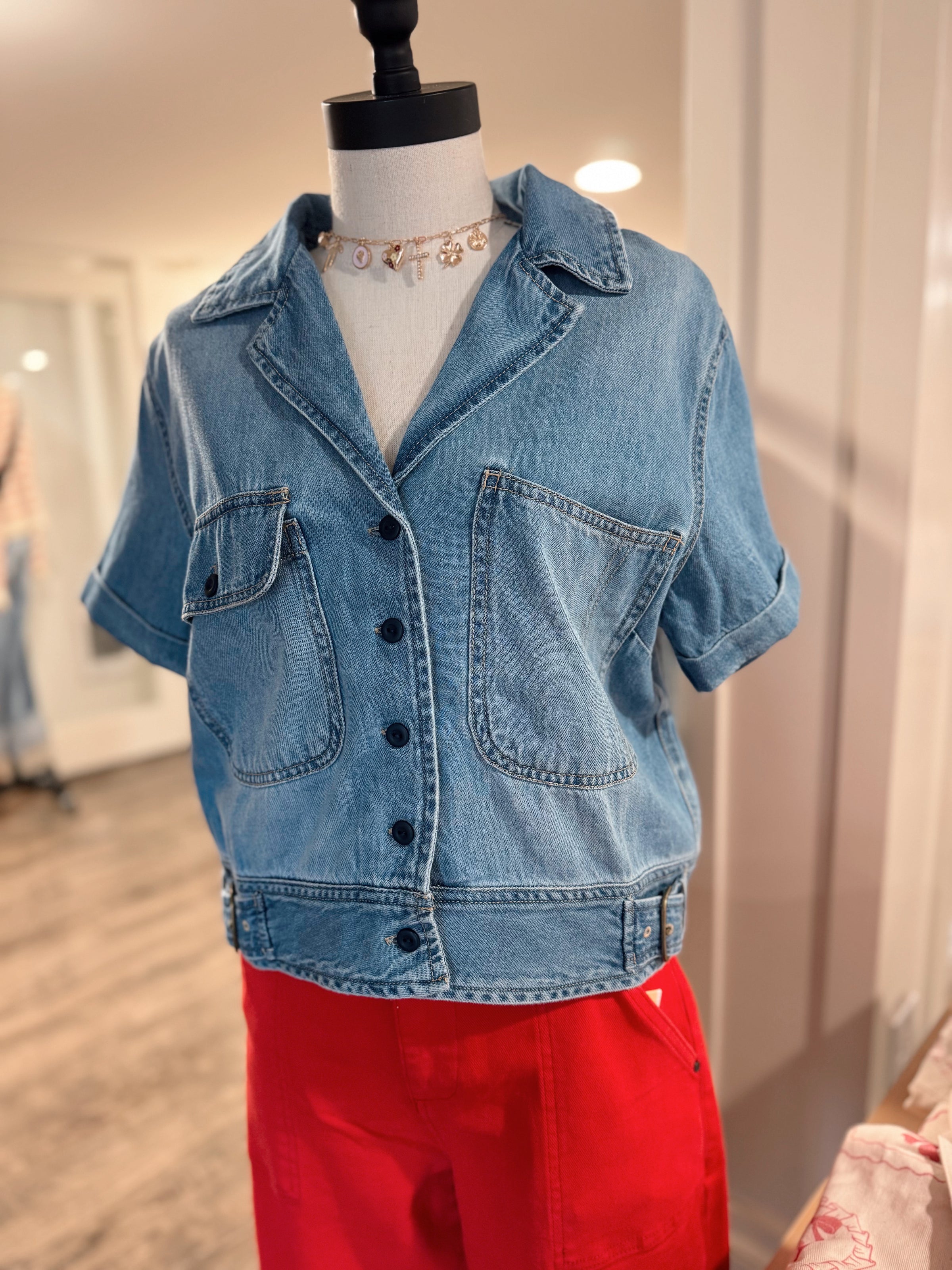 Spring Fever Short Sleeve Denim Blouse