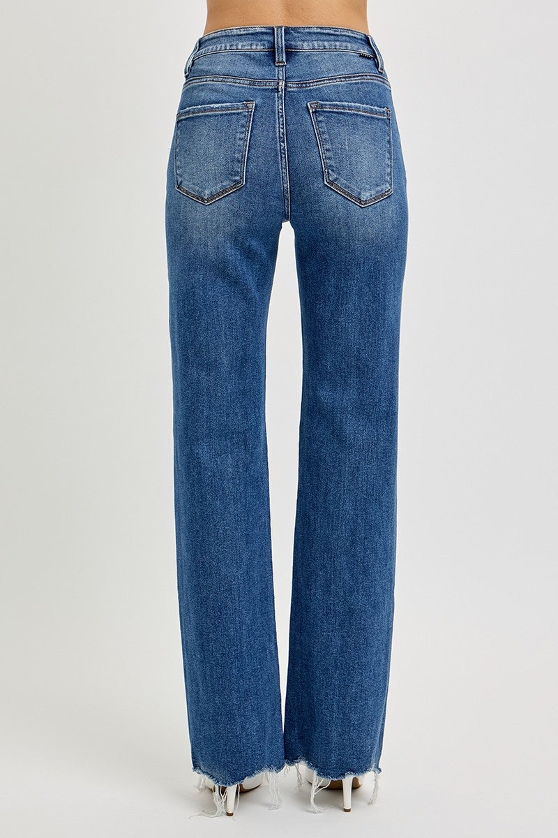 Introducing the Tabitha—your new go-to jean that's as fabulous as you are! These high-rise beauties feature built-in tummy control to smooth and flatter, while the stretchy fabric moves with you all day long. The straight-leg silhouette is timeless and versatile, perfect for dressing up or down, and the edgy raw cut hem adds that modern, trendy touch. Dark wash, endless possibilities. Comfort meets style in one seriously chic package!