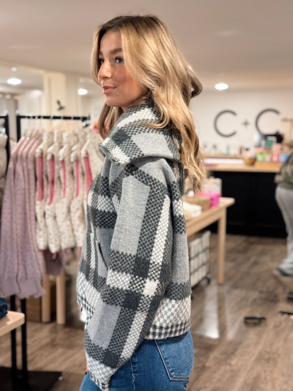 Plaid Sweater Jacket - Gray
