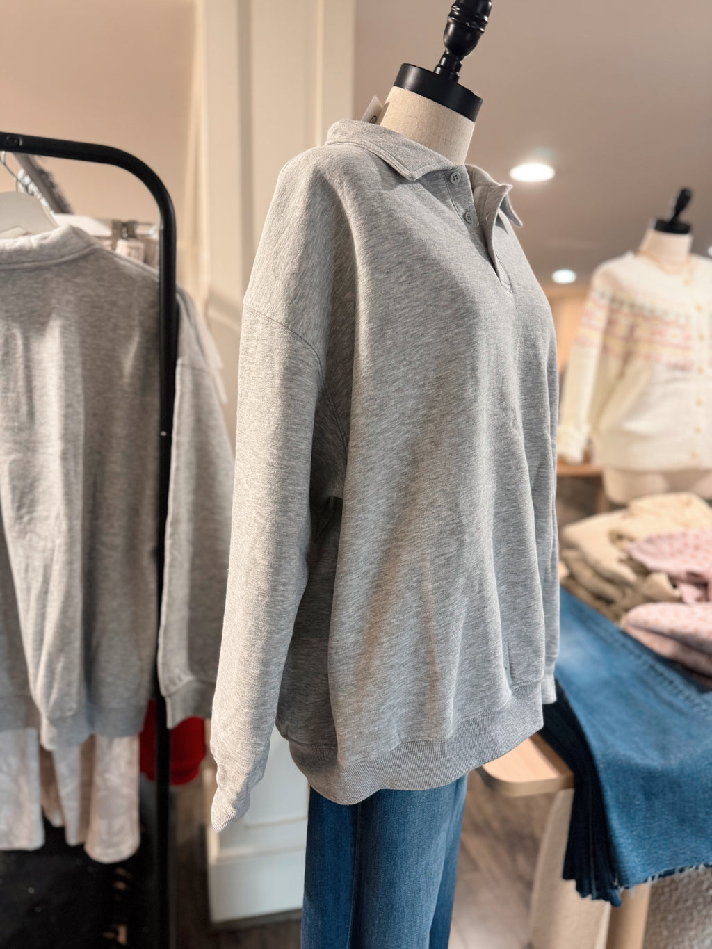Oversized Sweatshirt Polo - H. Grey