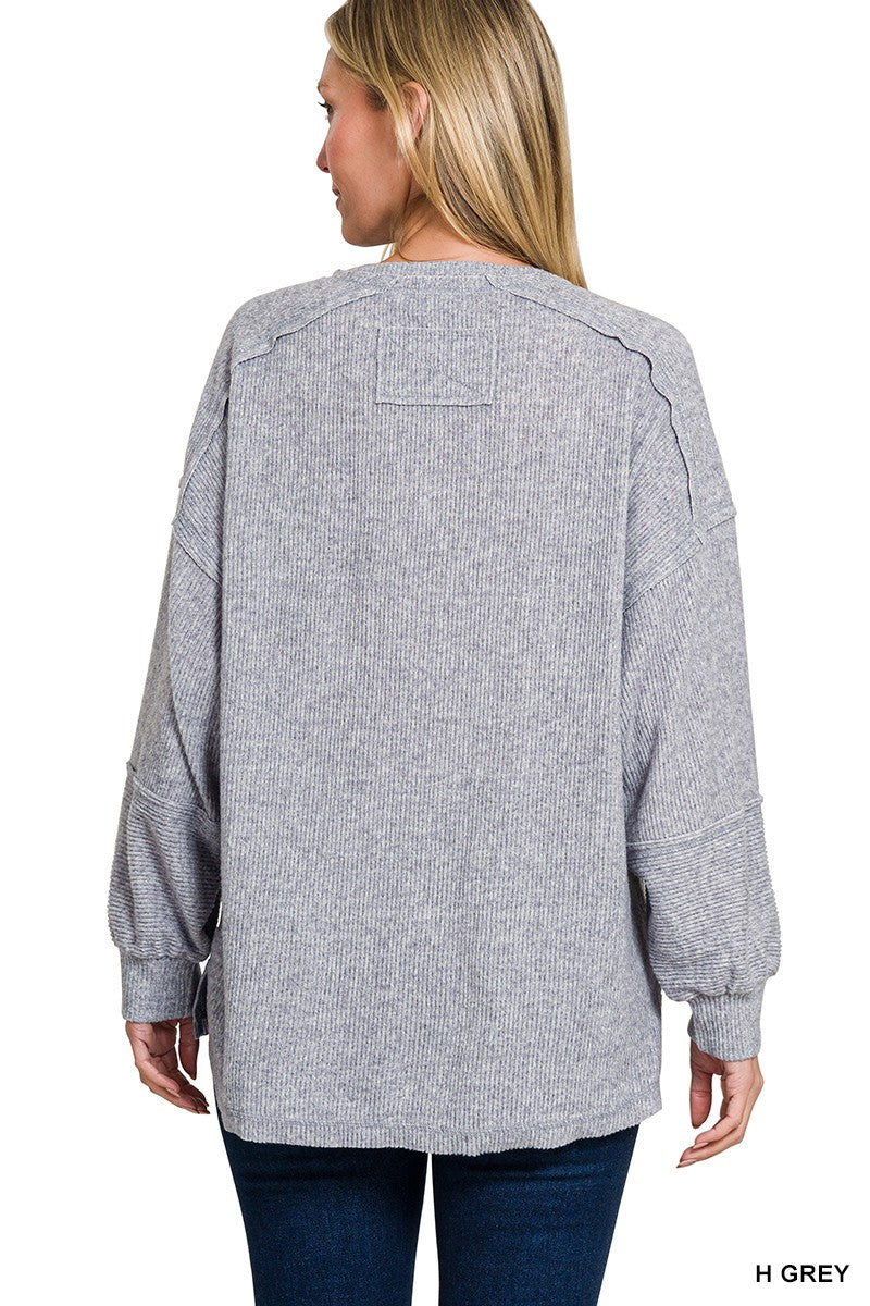 Ultra Soft Ribbed Henley - H. Grey