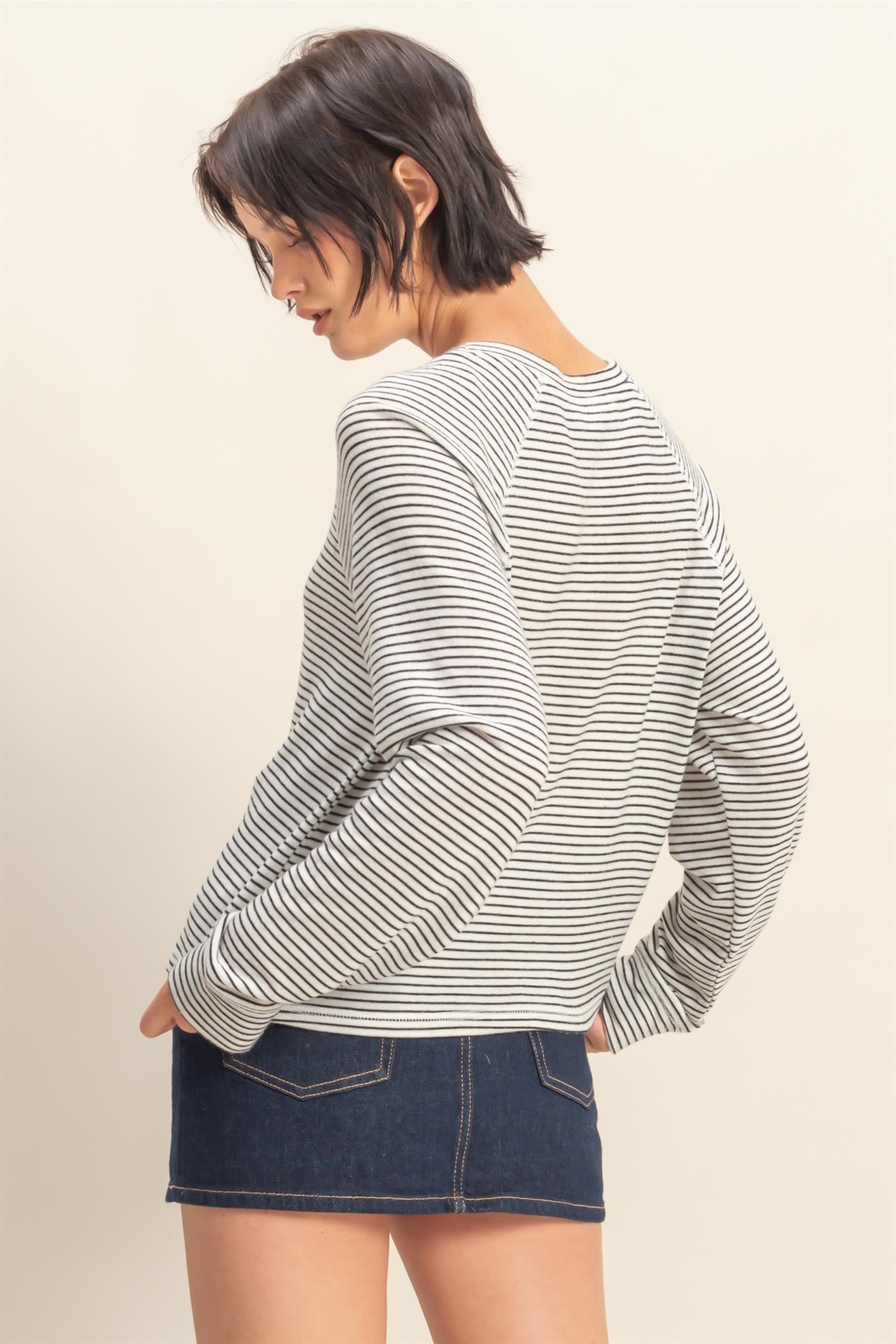 Striped perfection meets everyday comfort in this must-have top! Featuring a relaxed silhouette and buttery-soft textured fabric, it's your new go-to for mixing and matching. Layer it over a crisp white tee or rock it solo—this versatile piece transitions seamlessly from casual coffee runs to weekend brunch. Pair with your favorite jeans, tailored trousers, or a sleek skirt for endless styling possibilities. The timeless stripes? They're basically a cheat code for looking put-together without even trying.