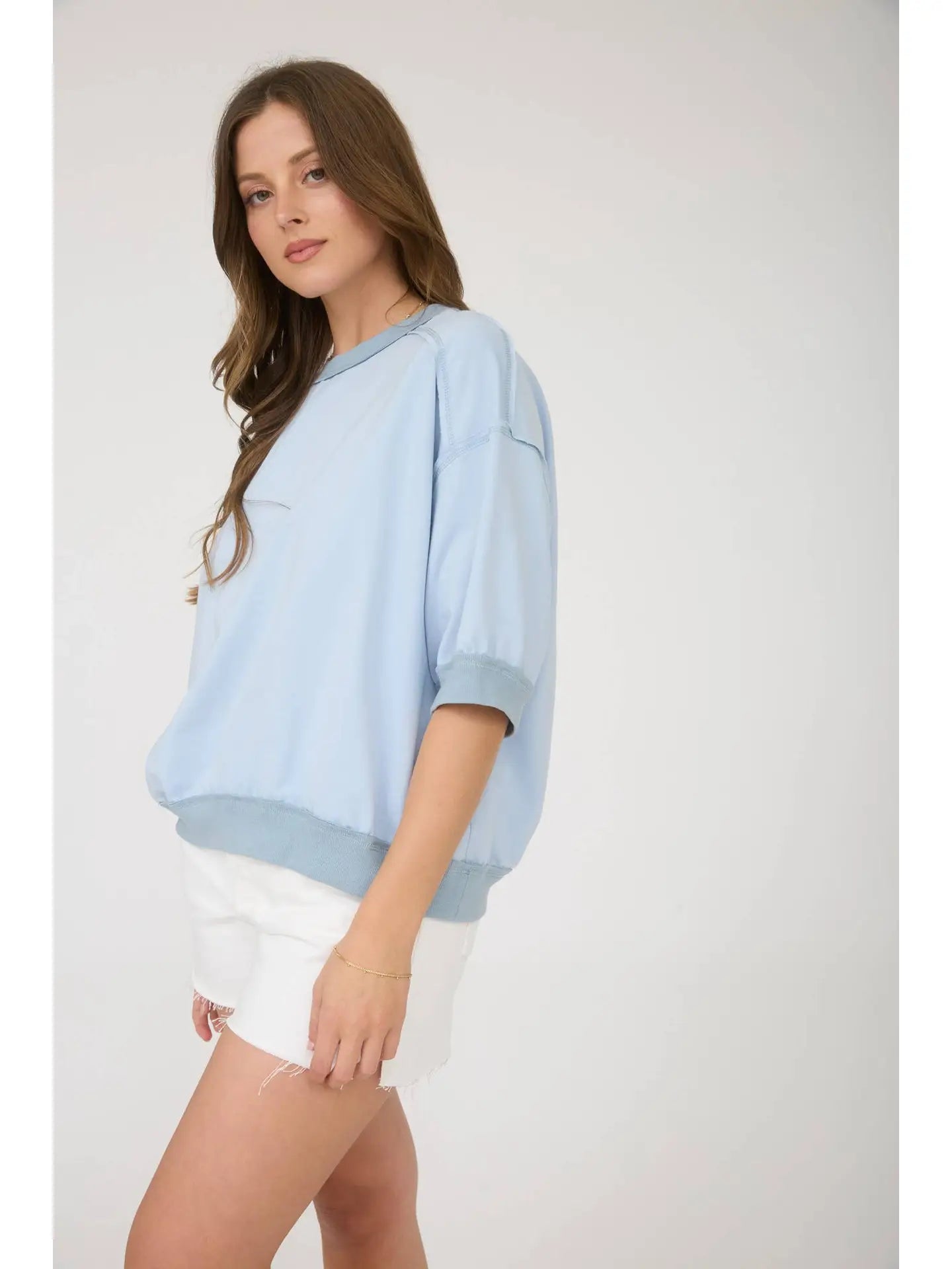 Effortless comfort meets casual style with this terry fabric knit top. Featuring a classic round neckline and eye-catching contrast trim, it's the perfect layering piece for everyday wear. The soft, breathable terry construction keeps you cozy without the bulk, making it ideal for lounging or running errands. A versatile wardrobe essential that pairs seamlessly with jeans, joggers, or skirts.