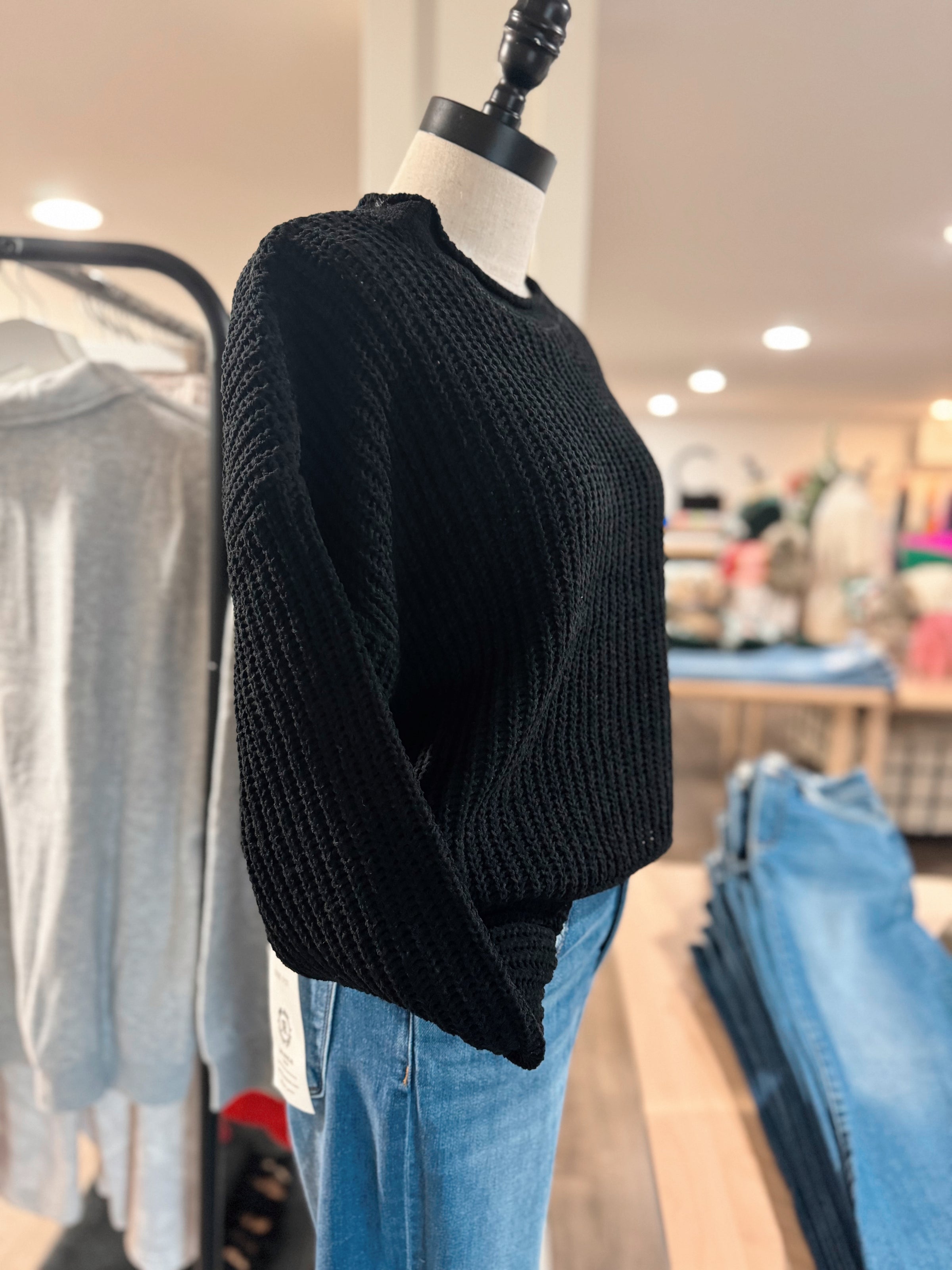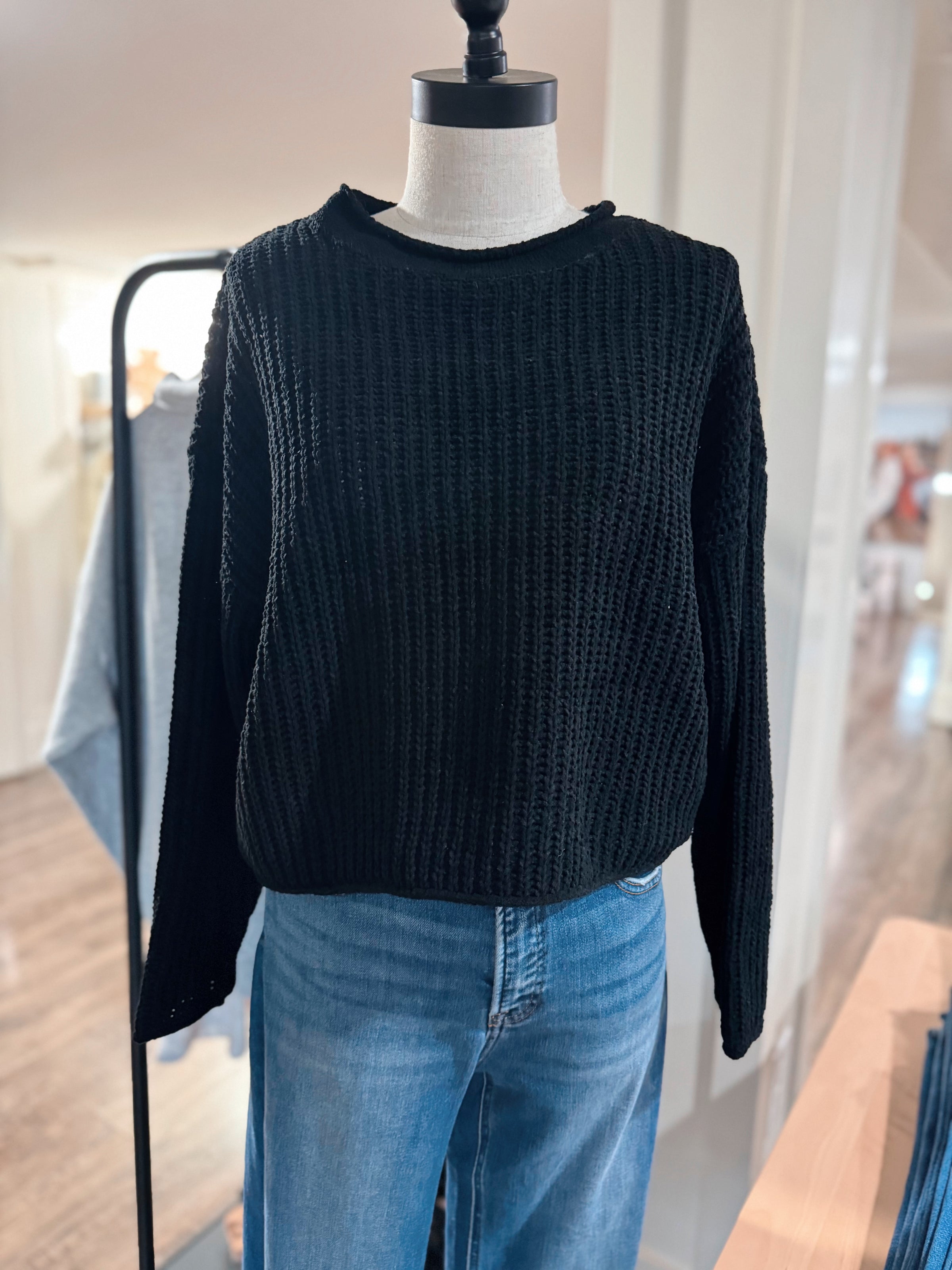 Rolled Edge Sweater - Black