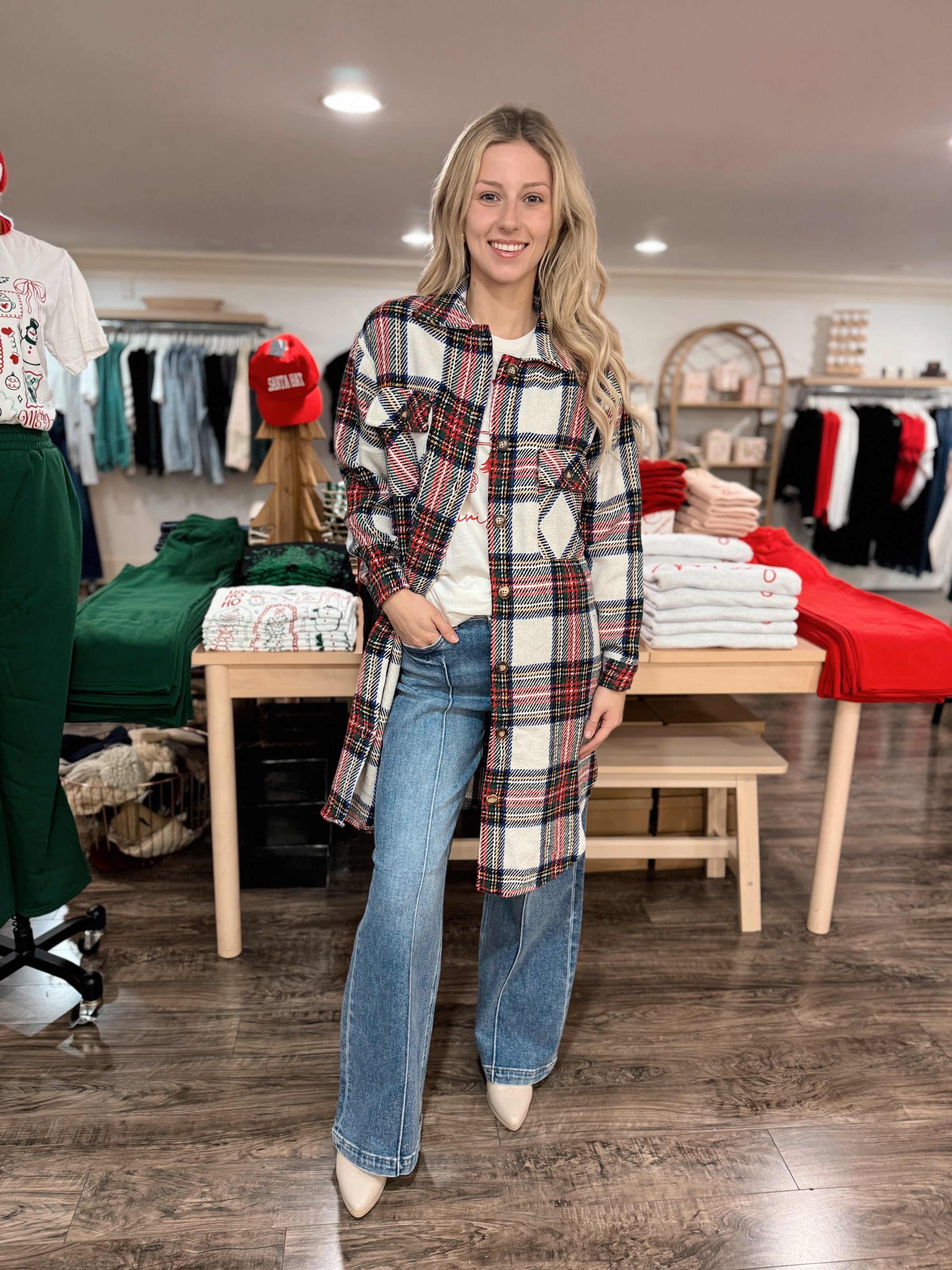 Brighten up your look with the Merry & Bright Long Shacket! This fun, multicolored plaid piece features a cool button-front and handy side pockets, perfect for keeping your essentials close. Unlined for mom-bulky feel, it’s the trendy layering must-have that adds a playful pop to any outfit.