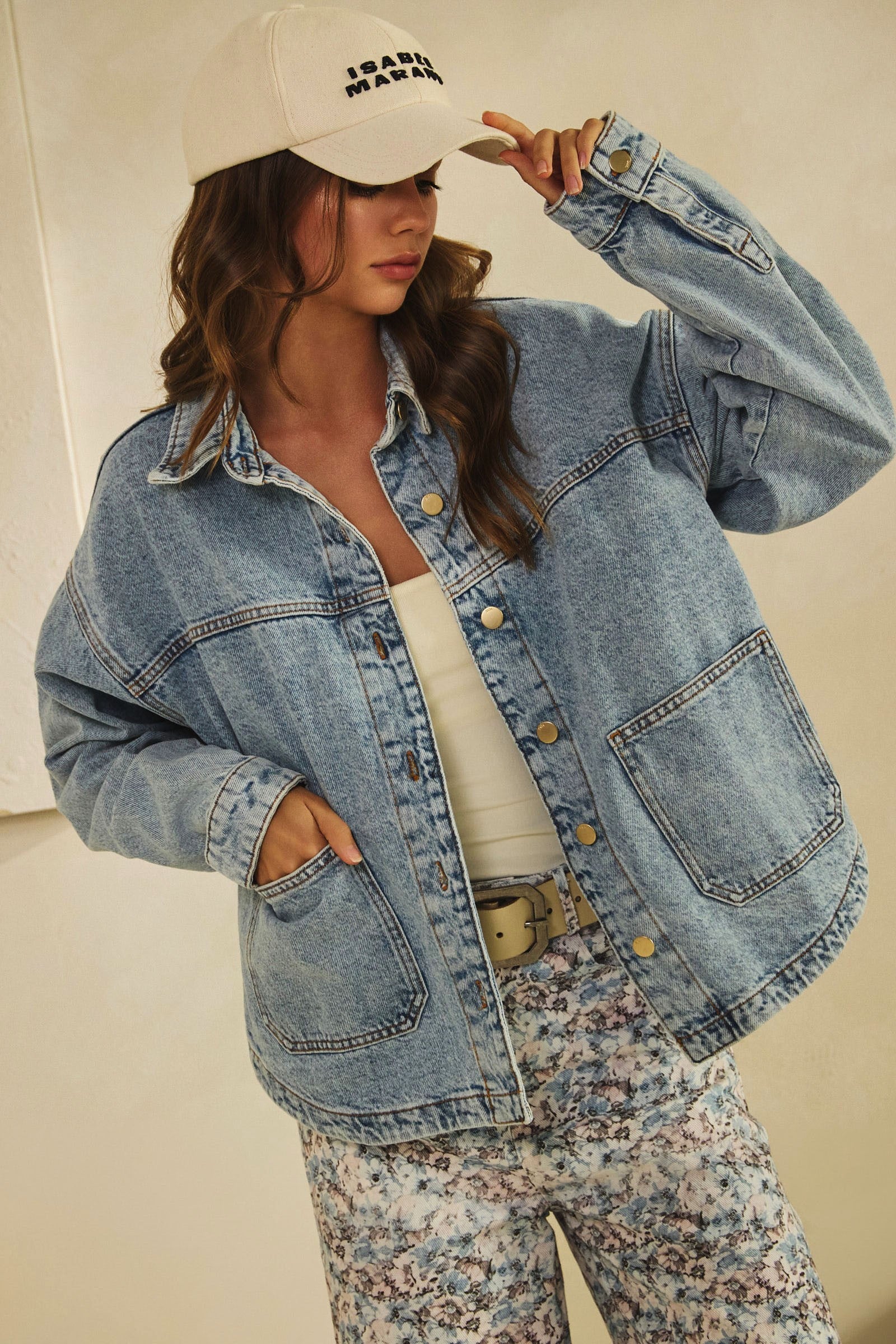 The Molly Vintage Denim Jacket offers a laid-back vibe with its relaxed fit and classic square pockets. Crafted from vintage washed denim, this jacket brings a timeless, effortlessly cool look to any outfit. Perfect for layering, it’s your go-to piece for easy style with a retro edge.