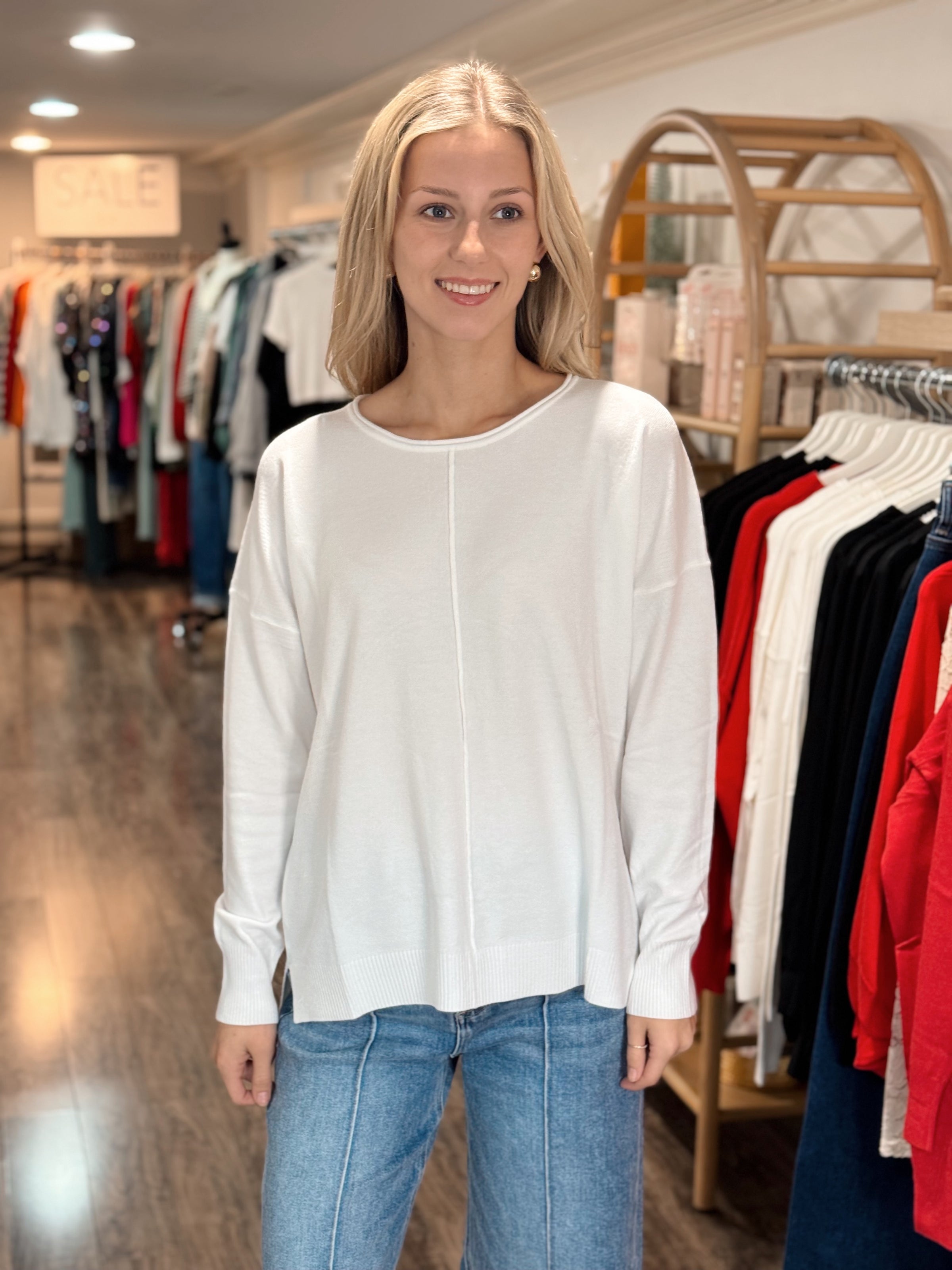 Experience ultimate comfort in the Zen Dreams Sweater. With a relaxed fit and soft viscose knit, you'll feel zen all day long. The ribbed hem and front seam add a touch of style.