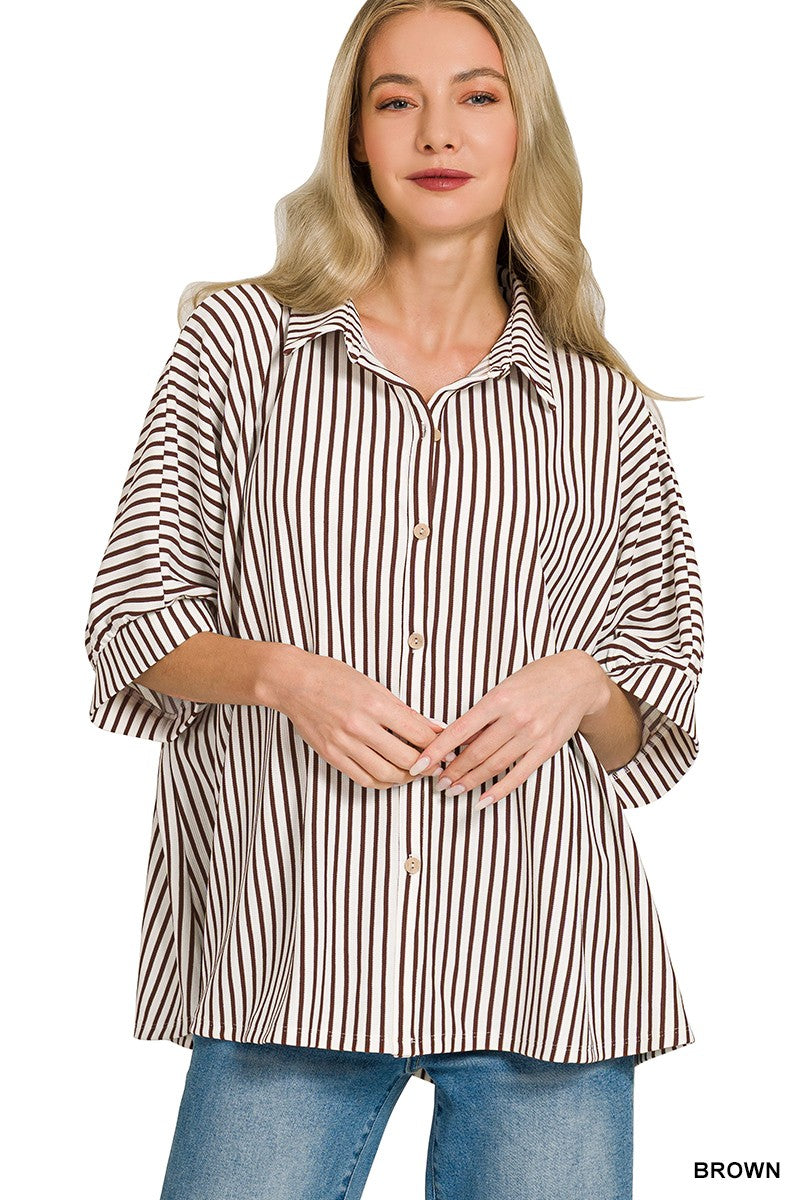 Good Vibes Stripe Blouse - Brown