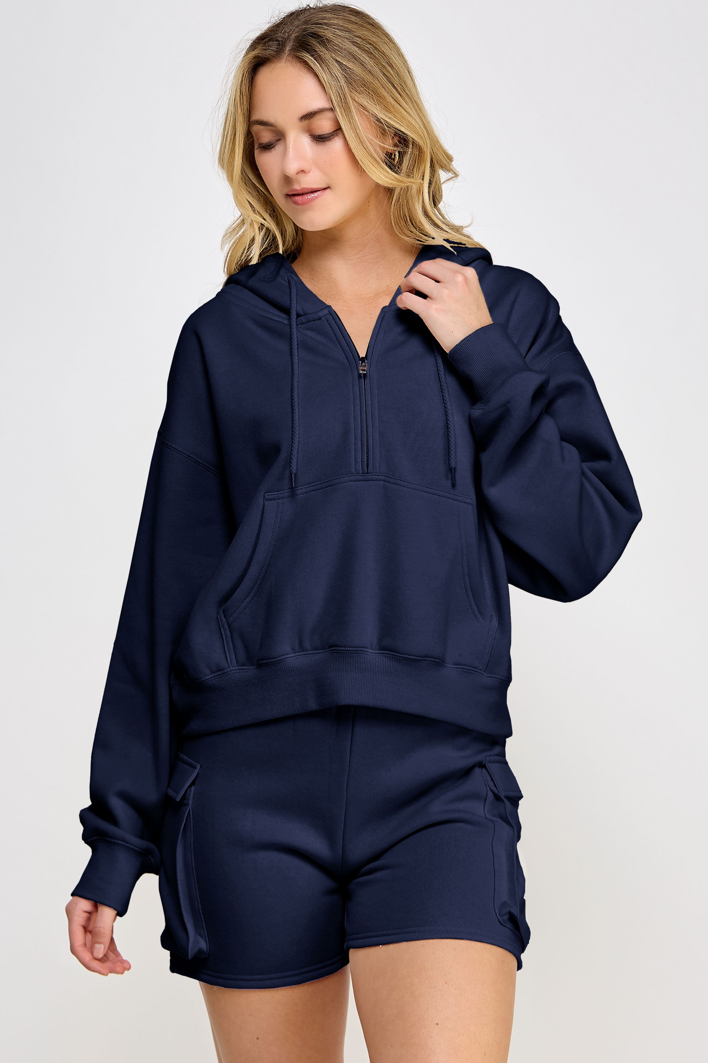 Wrap yourself in ultimate comfort with this cozy brushed fleece half zip hoodie. Crafted from a premium 60% cotton and 40% polyester blend, it delivers the perfect balance of softness and durability. The adjustable drawstring lets you customize your fit, while long sleeves feature banded cuffs and hem for a polished look. Pre-washed for a true fit that won't shrink, this versatile layer is your go-to for effortless style any season.