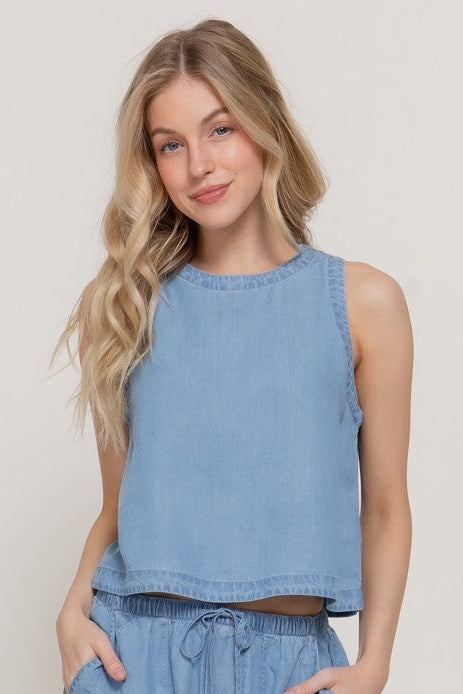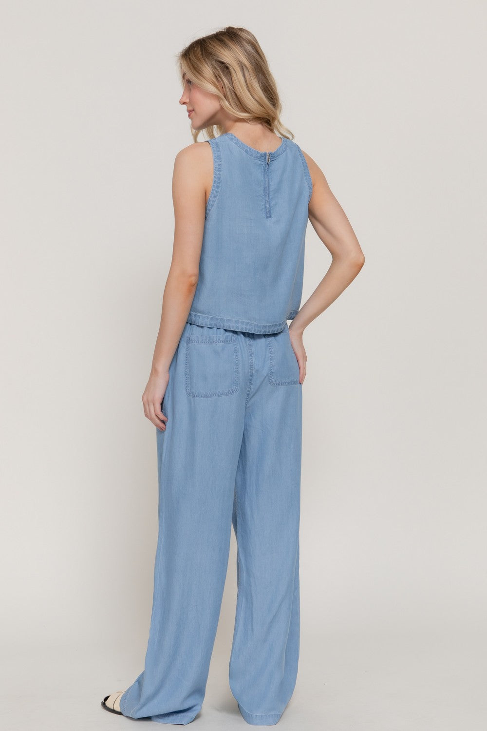 Embrace effortless comfort in this relaxed-fit sleeveless tank crafted from soft Tencel fabric. The zip-back design adds a modern touch while allowing easy layering and versatile styling. Perfect for warm weather wear, this breathable piece transitions seamlessly from casual days to evening outings. The gentle drape of Tencel creates a flattering silhouette that moves with you, making it an essential addition to any wardrobe.